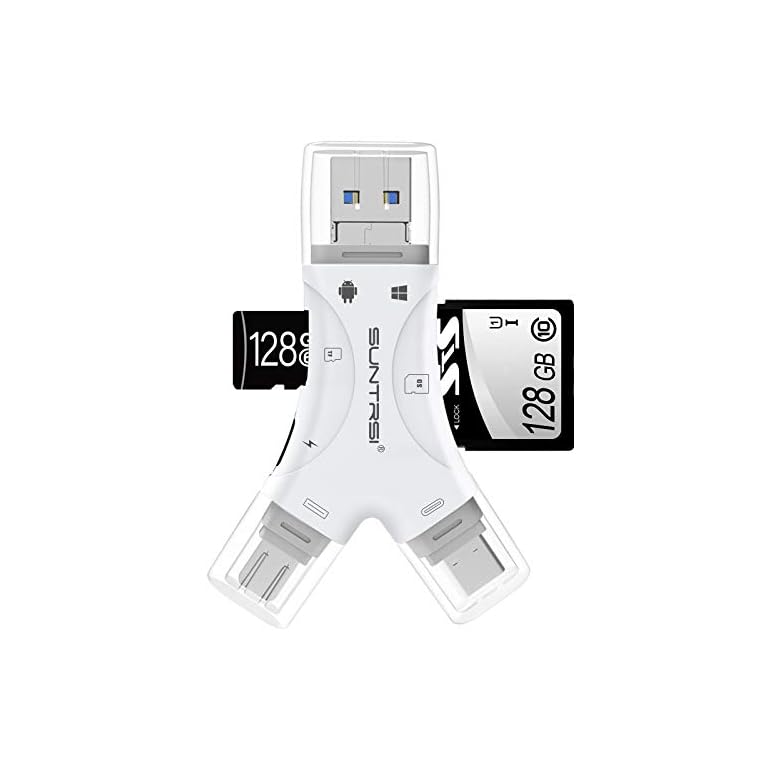 SD Card Reader for iPhone/ipad/Android/Mac/Computer/Camera,4 in1 Micro SD Card Reader Trail Camera Viewer, Portable Memory Card Reader SD Card Adapter for SD and TF Cards(White)