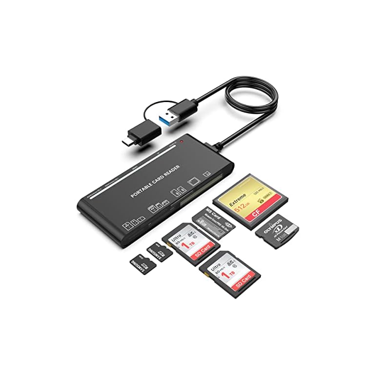 SD Card Reader for iPhone, iPad, USB C and Lightning Dual Port SD Card Adapter, Memory Card Reader for Camera Adapter, Support SD, Micro SD, USB 3.0, No App Driver Required