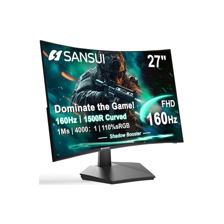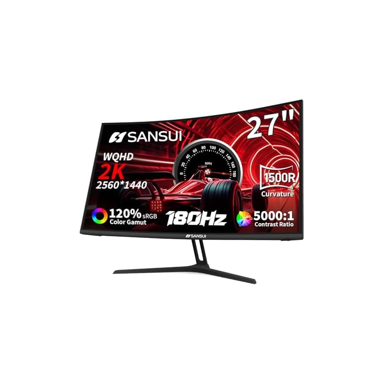 SANSUI 27 Inch Curved 240Hz Gaming Monitor FHD 1080P, 1500R Curve Computer Monitor Fast VA, 130% sRGB, 4000:1, HDR, FreeSync, MPRT 1Ms, Low Blue Light, HDMI DP Ports, Metal Stand, DP Cable Incl.