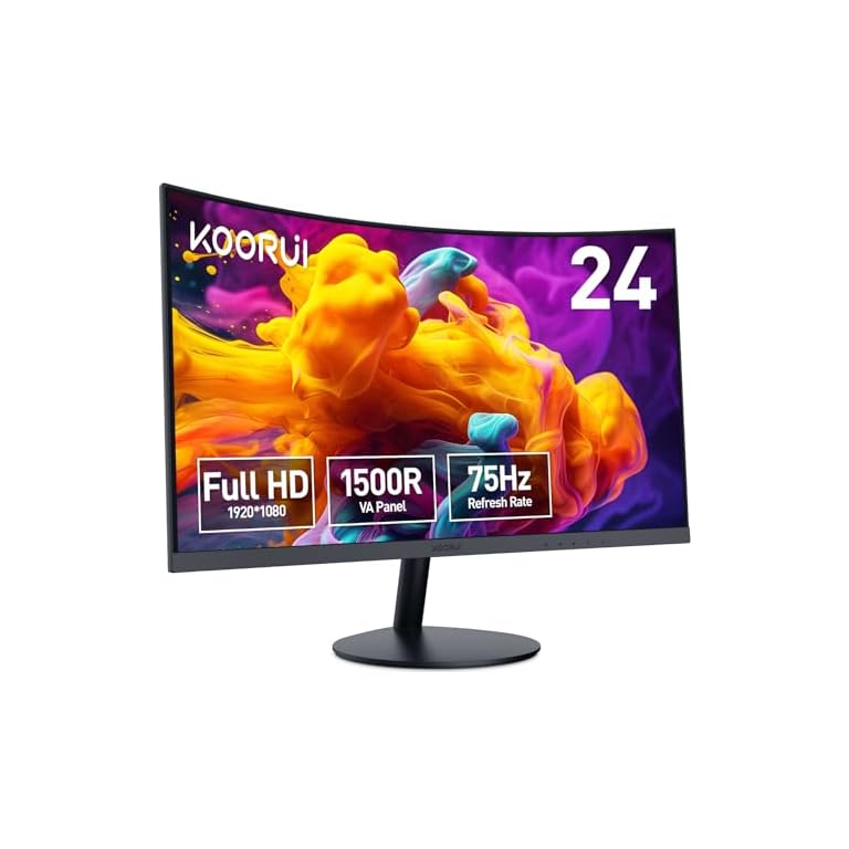 KOORUI 24 inch Curved Monitor, Full HD 1080P Curved Computer Monitor, 1500R Screen, HDMI VGA, Tilt Adjustment, LCD Display, Eye Care, Black 24N5CA