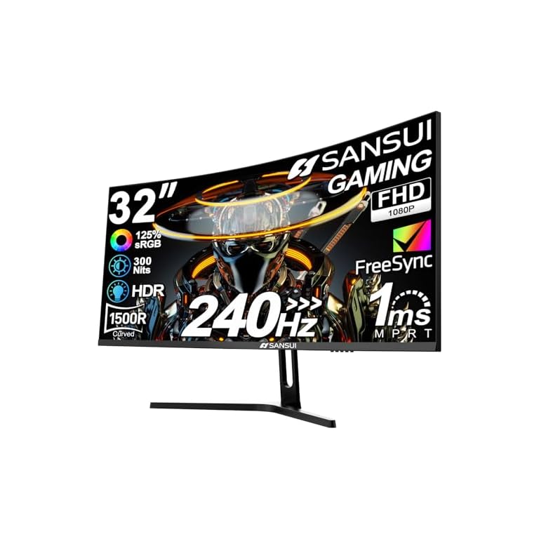 SANSUI 32 Inch Curved 240Hz Gaming Monitor High Refresh Rate, FHD 1080P Gaming PC Monitor HDMI DP1.4, Curved 1500R, 1Ms MPRT, HDR,Metal Stand,VESA Compatible (ES-G32C3F DP Cable Incl.)
