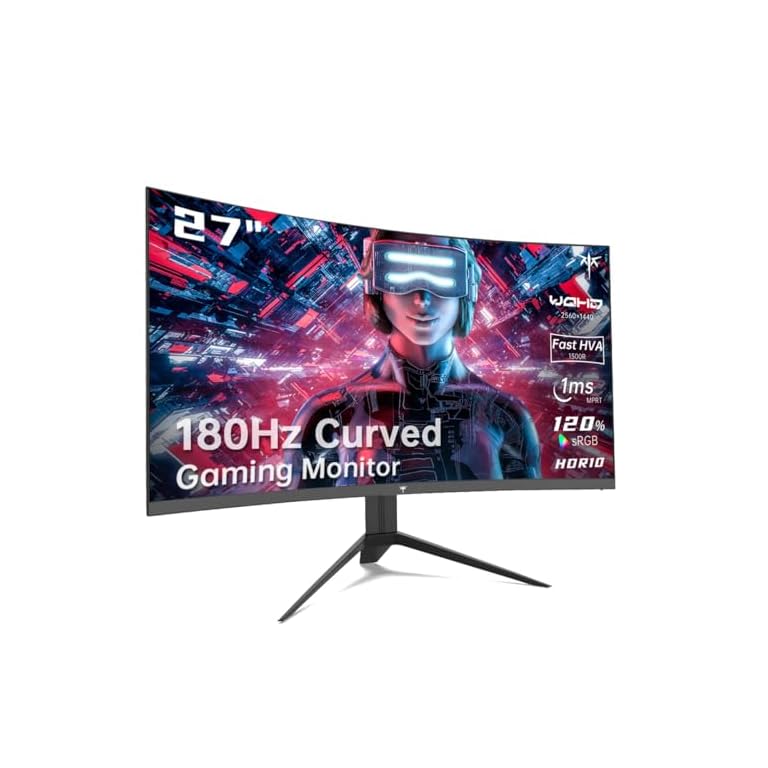 27 inch Gaming Monitor, 1440P Curved Monitor, 180Hz, 144Hz, 2K, 1500R, 1ms, FreeSync/G-Sync Compatible, DisplayPort/HDMI/USB, Ultrawide PC Vesa/Wall Mount Computer Monitor, H27S17