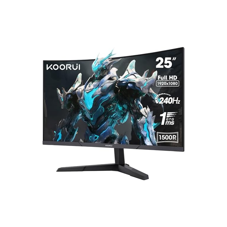 KOORUI 25 Inch Curved Gaming Monitor 240Hz FHD 1080P Computer Monitor, 1500R 1ms GTG Display, Adaptive Sync, 90% DCI-P3,HDR, Eye Care, Tilt Adjustable, VESA 75x75mm, Black,G2511XC