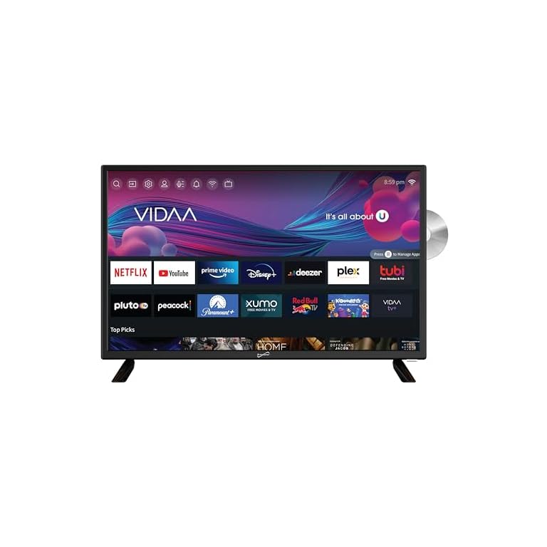 Supersonic SC-2426SDVD 24-inch LED Smart HDTV w/DVD Player, ATSC & NTSC System, 3X HDMI, 1080p, WiFi, USB, Multi Language OSD, AC/DC Compatible for Home, Kitchen, or RV Camper, DC Car Cord Included