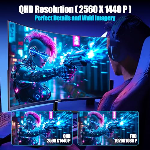 2K QHD 180HZ MONITOR: This Gaming Monitor adopts a trendy 1800R VA screen design, ultrafast 180Hz refresh rate, QHD ( 2560 x 1440 ) resolution display, 1ms response time delivers clear pictures, smooth videos, fastest moving scenes, enhancing your usage experience in any demanding moment.