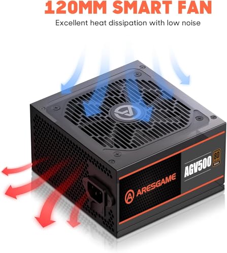 Product Introduction:–ARESGAME AGV500 is the easiest balance between reasonably priced price and excellent performance. –Very stable power output makes it the preferred and reliable PSU choice.–Its luxurious black appearance also brings a high-tech feel on your game setting. Features: —-Charming Outlook: The SECC black coating casing, black bushing cables and connectors, and black fan Assist to bring a high-tech appearance for your system —-High-Efficiency: 80 plus Bronze certified, with 85% efficiency or higher under typical rather a lot —-Stable Output: offers your system more reliable and stable output voltages, providing more consistent power delivery —-Ultra Quiet 120mm Fan: with intelligent fan speed regulate —-Excellent Heat Dissipation: Honeycomb ventilation design combine with the fan function for better heat dissipation —-High-end VGA card fortify with brand new PCI-E 6+2pin connector —-Convenient Cable Design: Long cable length no less than 500mm supports high-end case and meets needs of perfect cables management —-Magic Cable Tie: Assist to keep your computer environment tidy and minimize space usage —-Full Protection: including OVP/UVP/OPP/SCP Specification: –Model: ARESGAME AGV500 –Modular: Non-Modular –Watt: 500W –Type: Desktop ATX PSU –80 Plus: Bronze Certified –VAC Input: 100V-240V –Fan’s Size: 120mm/4.72inch –Product Dimensions:150mm(W)x140mm(L)x86mm(H)/5.9×5.5×3.3inch Package Included: 1 x 500W Power Supply 1 x AC Power Cord 1 x User Manual 1 x Quick Installation Guide 1 x Tester 4 x Screws 4 x Cable Ties