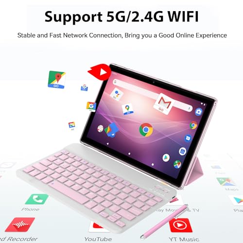 【2.4G/5G Wi-Fi 6.0+6000mAH Battery】 10 inch Wifi tablet beef up 5Ghz Wi-Fi 6 or 2.4Ghz, it has a more stable wireless signal, achieves faster transmission speed, and makes wireless devices more power-saving. In addition, it is equipped with a 6000mah battery, a single charge can last as long as 10 hours, perfect for long-distance commuting and trip, reading, watching movies, dramas, listening to music and so forth.