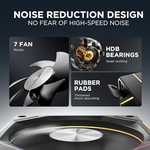 【Noise Reduction Design】 The 120MM fan features a max noise level of 30 dB(A). Its 9-blade design and high-quality plastic reduce wind noise and vibration. Rubber pads and balancing adjustments further enhance noise reduction, creating a peaceful environment.