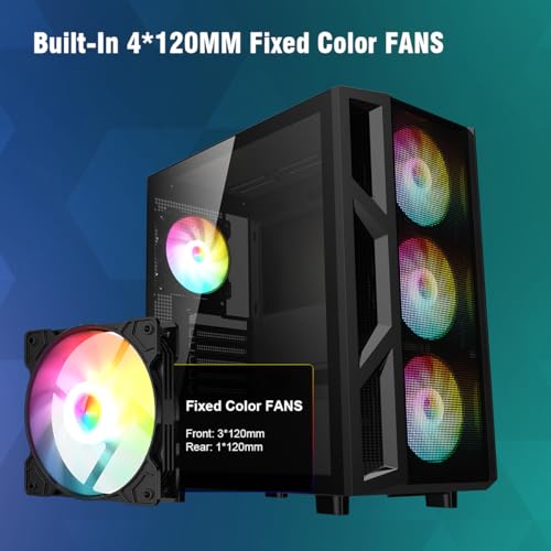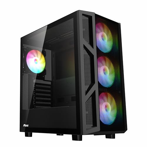 RUIX CV103 ATX Mid-Tower PC Case, Pre-Installed 4 x 120mm RGB Fans, RGB Color Lighting, Tempered Glass, USB 3.0, Gaming Computer Case, High-Airflow – Black
