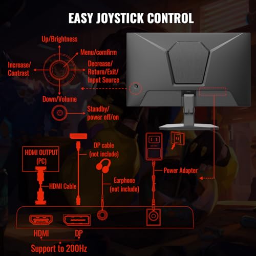 Convenient Ports – One HDMI 2.1 ports plus one DP 1.4 port, both up to 200Hz refresh rate; One HDMI cable included in the package; Audio Jack (no built-in speakers); VESA 75mm*75mm