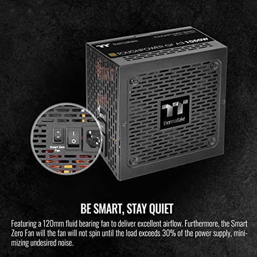 Toughpower GF A3 Gold series comes with a 16pin connector to supply powerful and stable performance allowing the PSU to natively run next-generation GPUs. The wattage marked at the 12VHPWR’s connector is the Really useful wattage. (Ref. Intel design guideline) The native 16 PIN (12VHPWR) PCIe connector of the GF A3 1050W can deliver as much as 600W for PCIe 5.0 graphics cards. Note: 1. Really useful wattage is an estimation of system power demand. Actual power demands might vary in accordance with specific components, usage, and plenty of other factors. 2. Please follow the Really useful power requirements from the GPU manufactures before the use of the 12VHPWR cable. •P/N: PS-TPD-1050FNFAGU-L •WATTS: 1050W •MODEL: TTP-1050AH2FLG •MAX. OUTPUT CAPACITY: 1050W •COLOR: Black •DIMENSION ( W / H / D ): 150mm(W)x86mm(H)x140mm(D) •PFC (POWER FACTOR CORRECTION): Active PFC •POWER GOOD SIGNAL: 100-150 msec•HOLD UP TIME: > 17msec •INPUT CURRENT: 20A-8A •INPUT FREQUENCY RANGE: 50Hz/60Hz •INPUT VOLTAGE: 100-240V~ •OPERATING TEMPERATURE: 5°C to + 45°C •OPERATING HUMIDITY: 20% to 85%,non-condensin •STORAGE TEMPERATURE: -40°C to + 55°C •STORAGE HUMIDITY: 10% to 95%, non-condensing •COOLING SYSTEM: 12cm FDB Fan •EFFICIENCY: Meet 80 PLUS® Gold at 115Vac input. •MTBF: 100,000 hrs minimum •SAFETY APPROVAL: FCC/ICES/CB/cTUVus •PCI-E 6+2PIN: 5 •PCIE 12+4PIN: 1(600W).