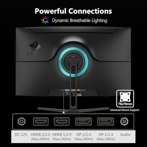 Born for Gaming: With Z-Edge rapid 240hz refresh rate, you have up to two times as many frames displayed on screen each and every second in comparison to a traditional screen. High refresh rate and 1ms response time can help player stay ahead of gaming when facing fast and precise movement. High refresh rate gets rid of the screen tearing, stutter, and input latency, presenting you the exceptional gaming experience.